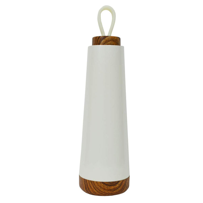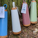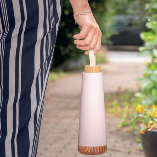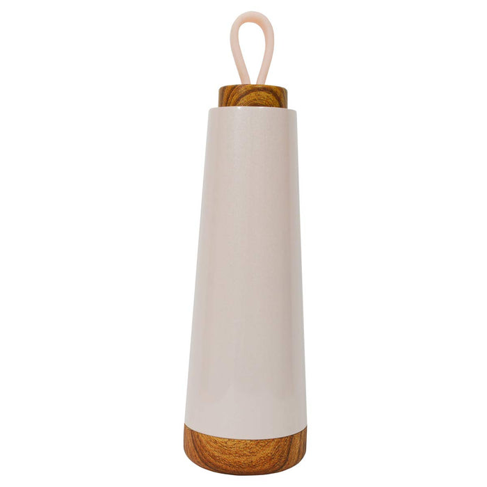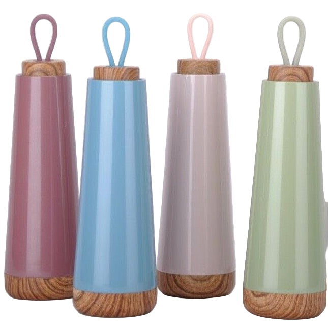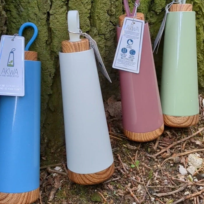 DESIGN: This stainless steel water bottle is available in 5 different glossy designs: AUBERGINE, TURTLE, PISTACHIO, FROST AND BLOSSOM. It comes with a wood effect feature and a wonderful new secure screw top lid with a rubber carry loop handle.