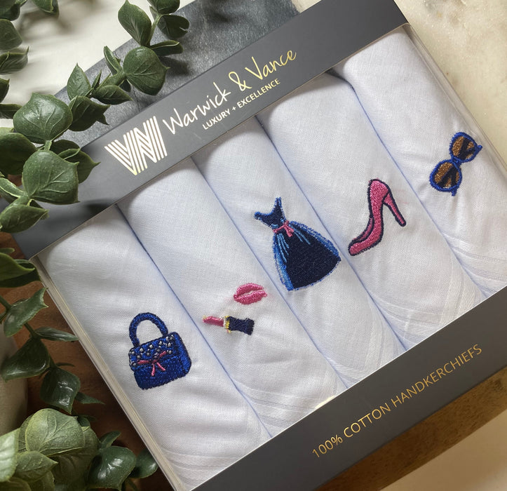 Warwick & Vance Party Embroidered 5 Pack Women's Handkerchiefs
