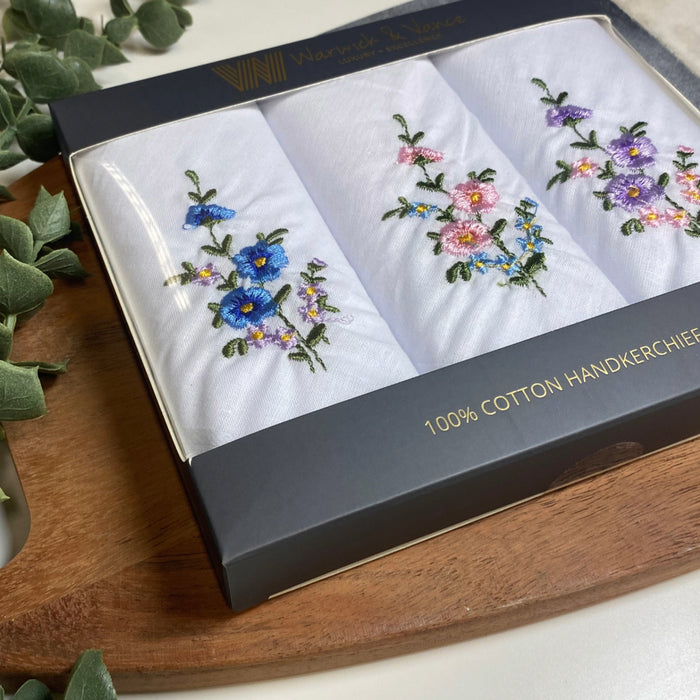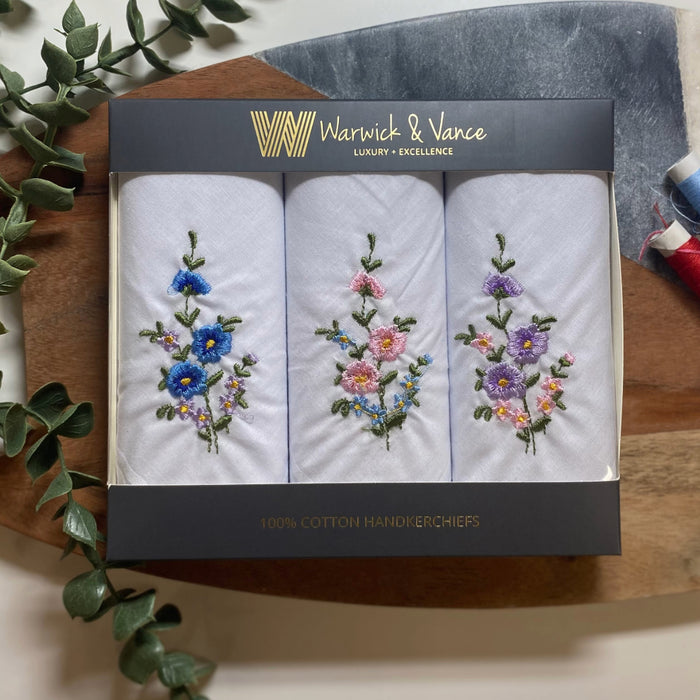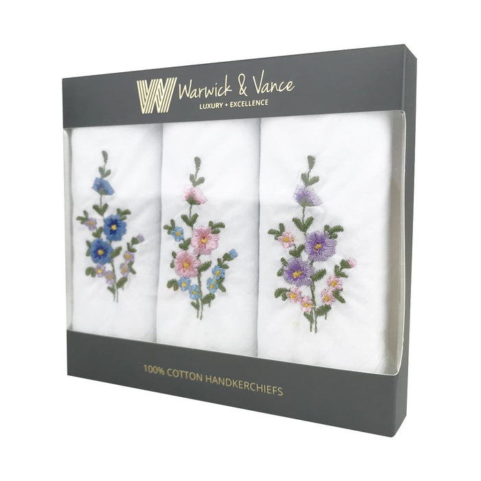 Warwick & Vance Women's 100% Cotton Assorted White Floral Handkerchiefs 3 Pack