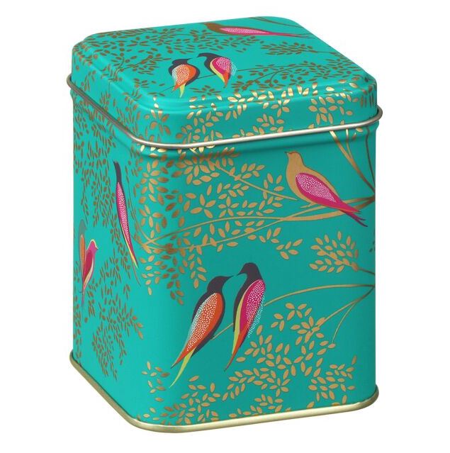 Enjoy the beauty of Sara Miller's design with this beautifully decorated metal tin, a stunning way to store your favourite items as well as making bits and bobs look clean, organised and tidied away. The gorgeous colours complement the subtle gold and the elegant exotic birds showcased in the design, with intricate branch detail and an all-over stylish finish. Measuring 10.5x7x7cm this small tin can be used for a variety of storage from a sweetie stash to cosmetics, sewing items, stationery and more. A lovely gift-able tin this Sara Miller design offers a high-quality look and feel.