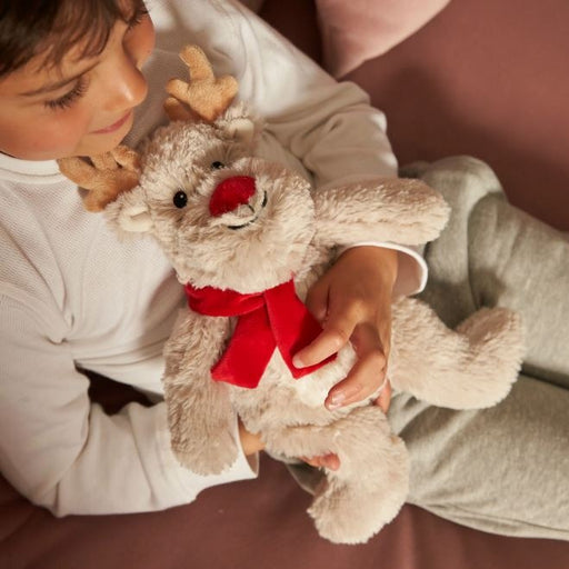 Experience the soothing comfort of our Warmies Reindeer soft toy. Filled with wheat, this heat pack can be microwaved for a warm, calming effect, o...