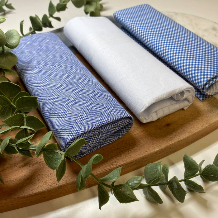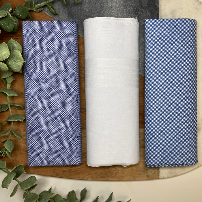Warwick & Vance Men's 100% Cotton Blue Check Handkerchiefs 3 Pack
