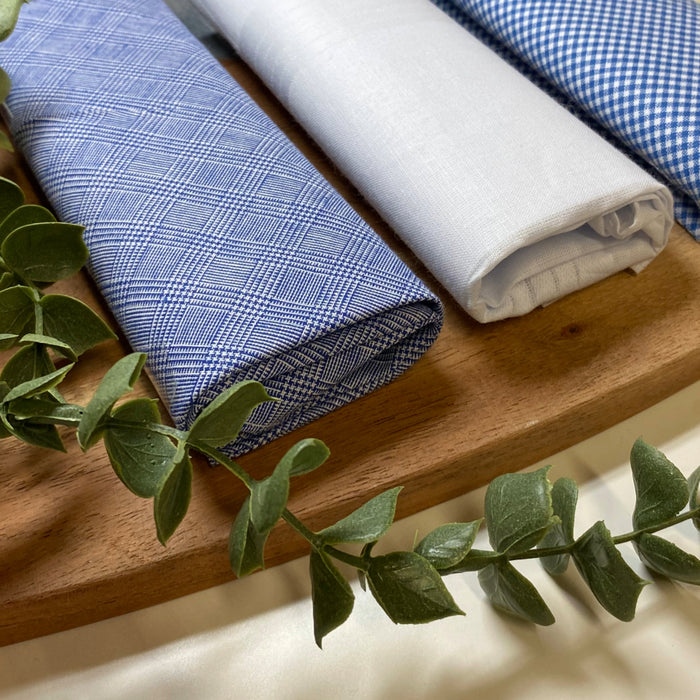 Experience luxury with the Warwick & Vance 100% Cotton Blue Check Handkerchiefs. Each box comes with a reusable pack of three handkerchiefs, perfect for everyday use. Brighten up your wardrobe and stay stylish with Warwick & Vance.