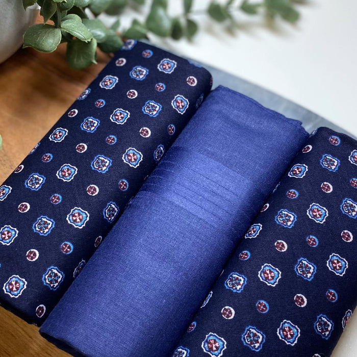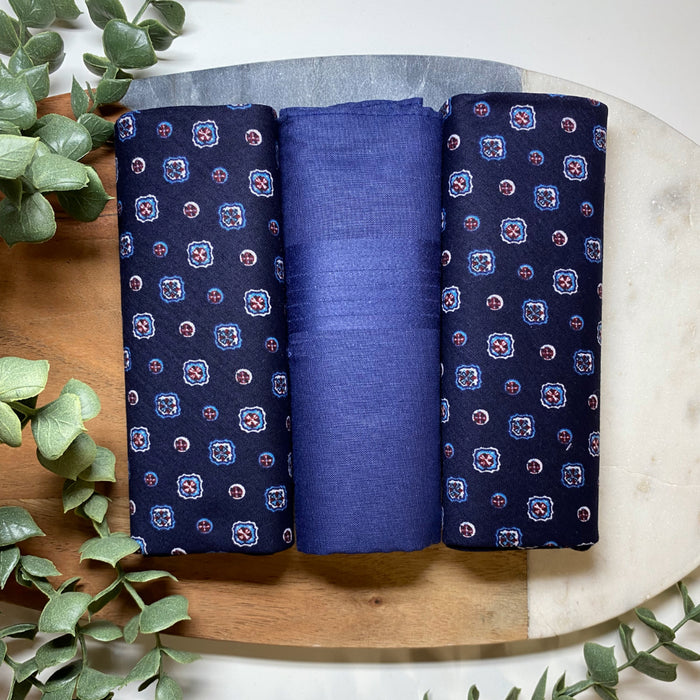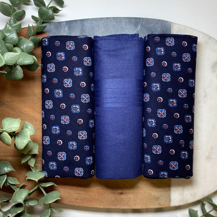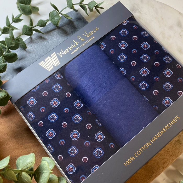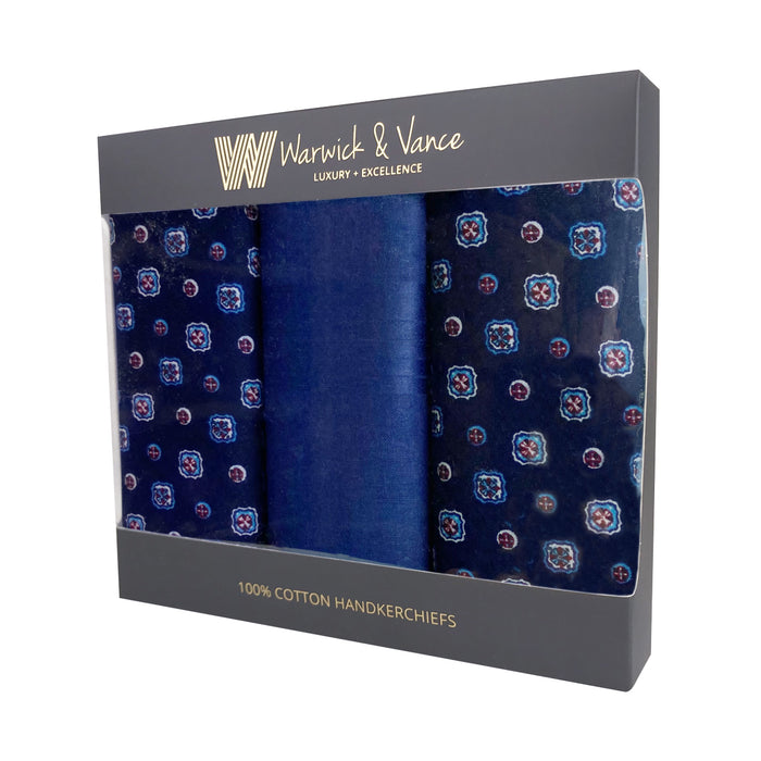 Warwick & Vance Men's 100% Cotton Blue Patterned Handkerchiefs 3 Packs