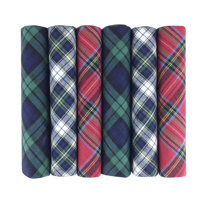 Warwick & Vance Men's 100% Cotton Tartan Check Handkerchiefs 6 Pack