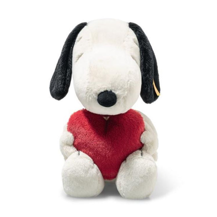 Bring home the beloved charm of Charlie Brown's wonderfully dog Snoopy with Official Steiff Snoopy Love. Snoopy Love is particularly stable thanks to the weight bags filled with granules in his feet and body. This 30cm plush carries his heart in his paws and is therefore a timelessly beautiful, heartfelt gift for all ages.