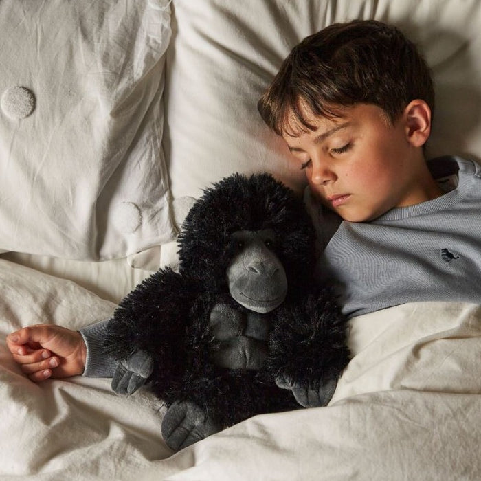 Experience the soothing comfort of our Warmies Gorilla soft toy. Filled with wheat, this heat pack can be microwaved for a warm, calming effect, or placed in the freezer for a cooling sensation. The lavender scent adds a relaxing aroma, making it perfect for sleep aid. Weighted and sensory, this adorable toy provides comfort and stress relief.