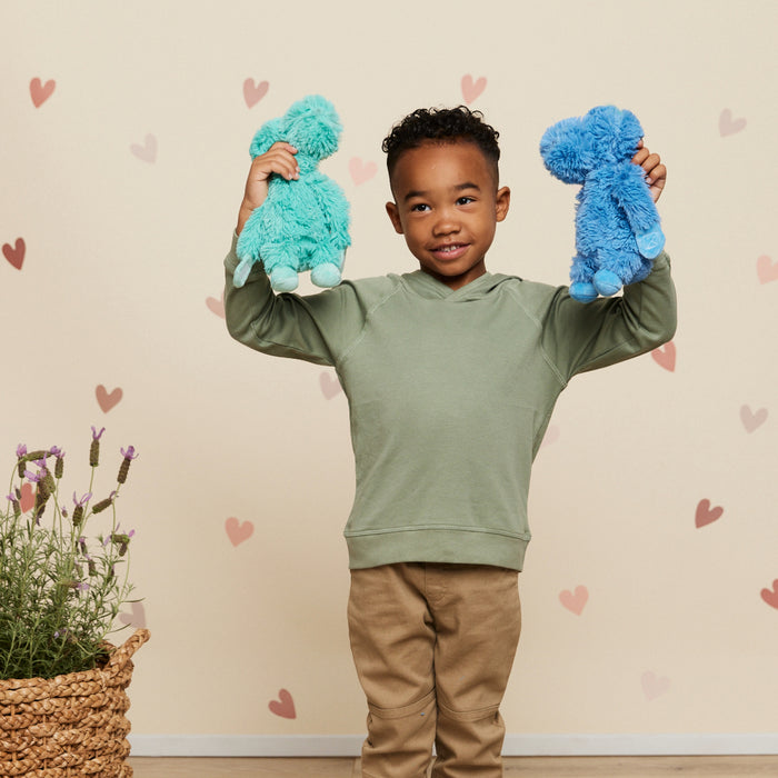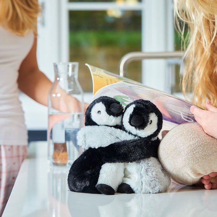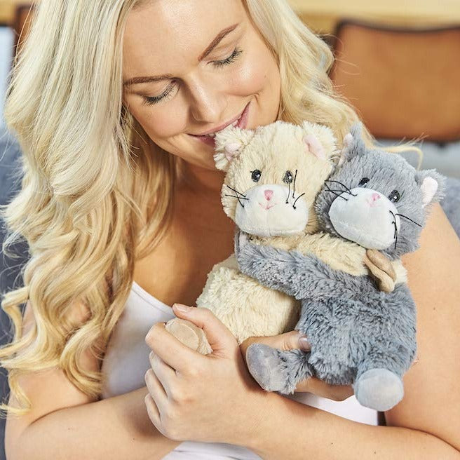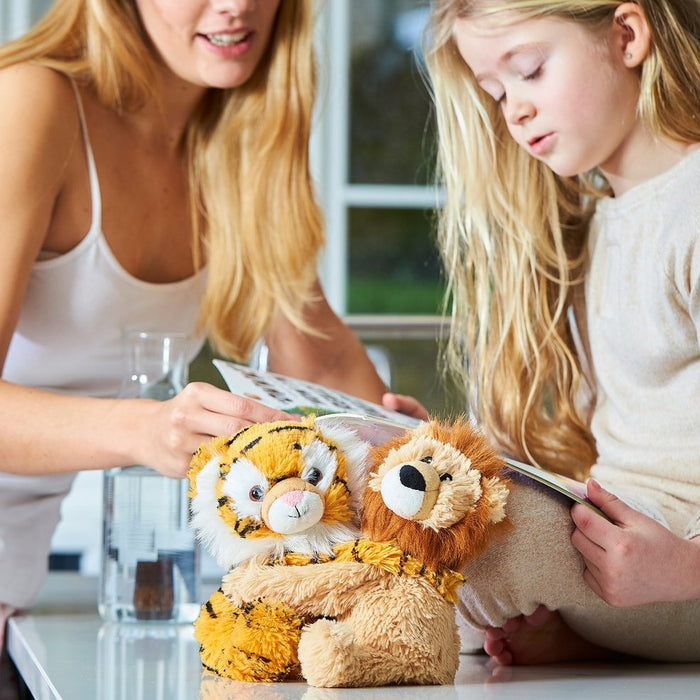 The perfect duo! These Warmies 'Warm Hugs' soft toys are double the cuteness! Each Hug comes with two detachable soft toys that can connect to each other with a fastener, allowing them to give each other a cosy hug. Each toy is filled with treated millet that can be safely heated in a clean microwave. Each toy also features a soothing lavender scent proven to aid with sleeping. A fun pairing that offers a relaxing, calming feel for bedtime as well as a fun soft toy combo to enjoy and play with. Please follow all care instructions on the product.