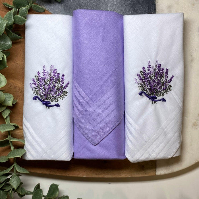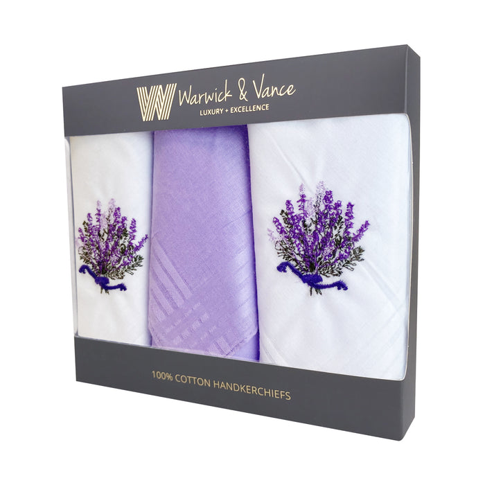 Warwick & Vance Women's 100% Cotton Lavender Handkerchiefs 3 Pack